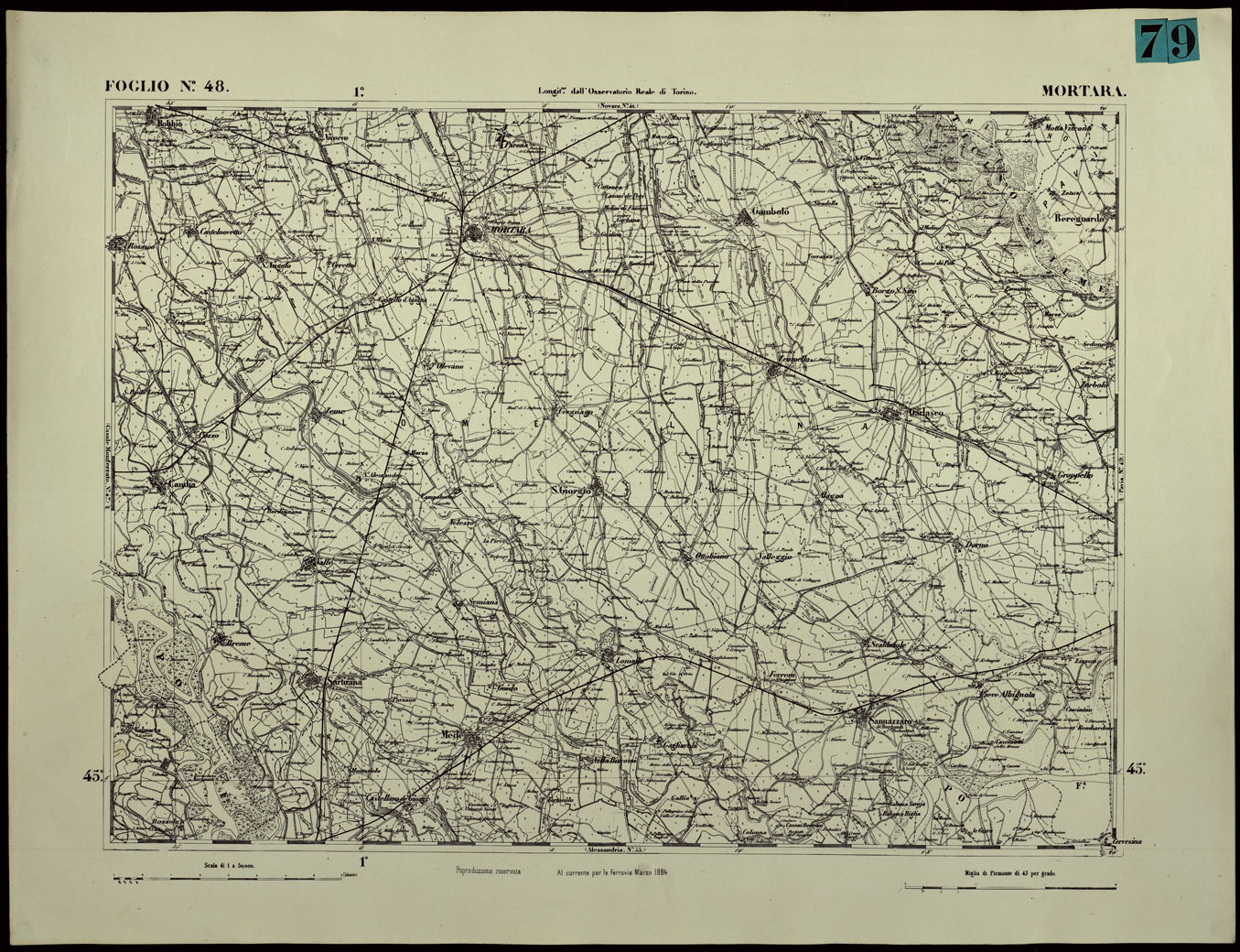 CARTA TOPOGRAFICA DEGLI STATI IN TERRAFERMA DI S.M. IL RE DI SARDEGNA ALLA SCALA DI 1.A 50.000. OPERA DEL CORPO REALE DELLO STATO MAGGIORE - FOGLIO N.°48. MORTARA