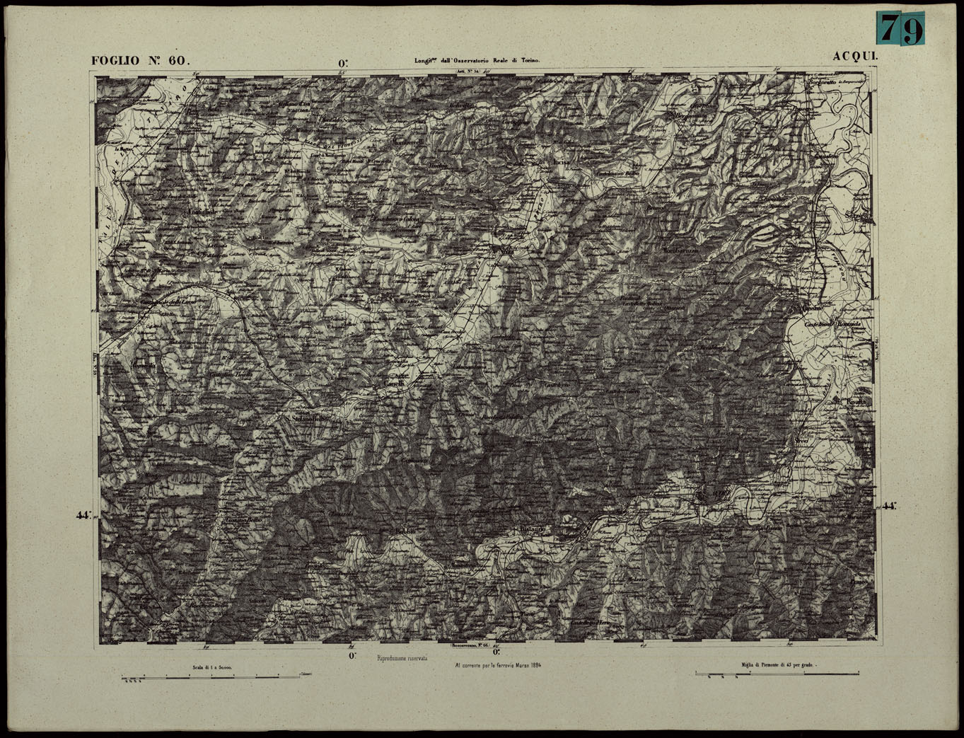 CARTA TOPOGRAFICA DEGLI STATI IN TERRAFERMA DI S.M. IL RE DI SARDEGNA ALLA SCALA DI 1.A 50.000. OPERA DEL CORPO REALE DELLO STATO MAGGIORE - FOGLIO N.°60. ACQUI
