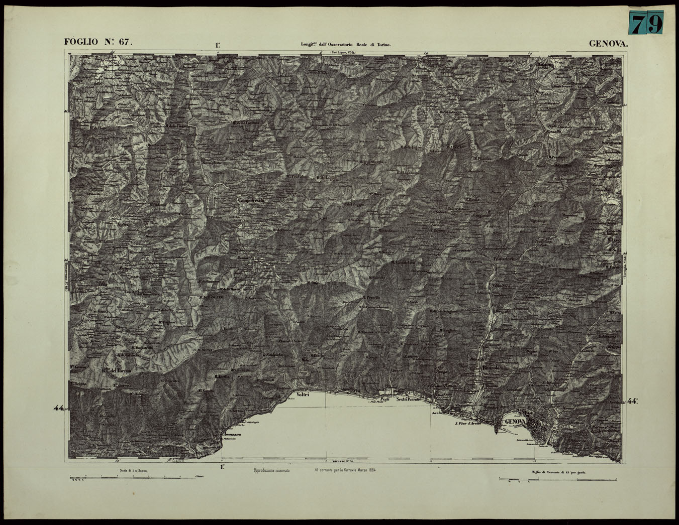 CARTA TOPOGRAFICA DEGLI STATI IN TERRAFERMA DI S.M. IL RE DI SARDEGNA ALLA SCALA DI 1.A 50.000. OPERA DEL CORPO REALE DELLO STATO MAGGIORE - FOGLIO N.°67. GENOVA