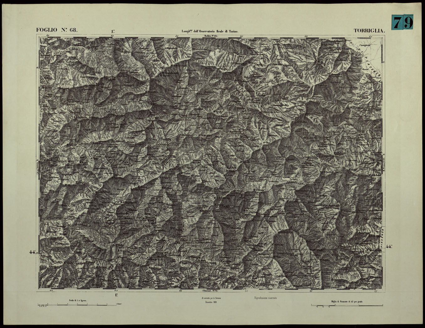 CARTA TOPOGRAFICA DEGLI STATI IN TERRAFERMA DI S.M. IL RE DI SARDEGNA ALLA SCALA DI 1.A 50.000. OPERA DEL CORPO REALE DELLO STATO MAGGIORE - FOGLIO N.°68. TORRIGLIA