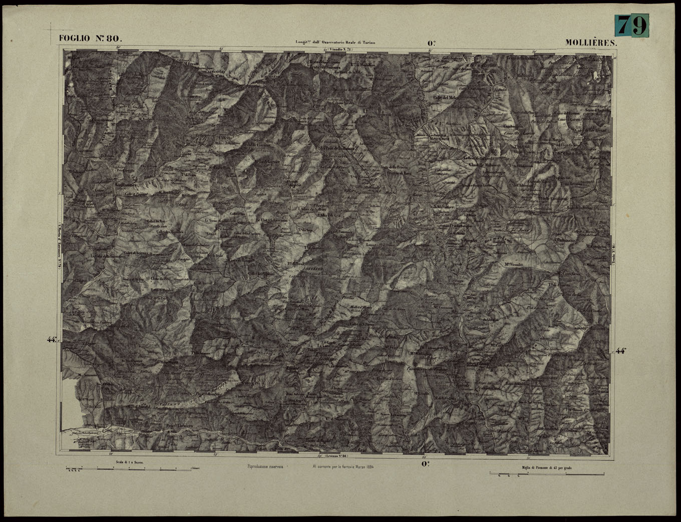 CARTA TOPOGRAFICA DEGLI STATI IN TERRAFERMA DI S.M. IL RE DI SARDEGNA ALLA SCALA DI 1.A 50.000. OPERA DEL CORPO REALE DELLO STATO MAGGIORE - FOGLIO N.°80. MOLLIERES