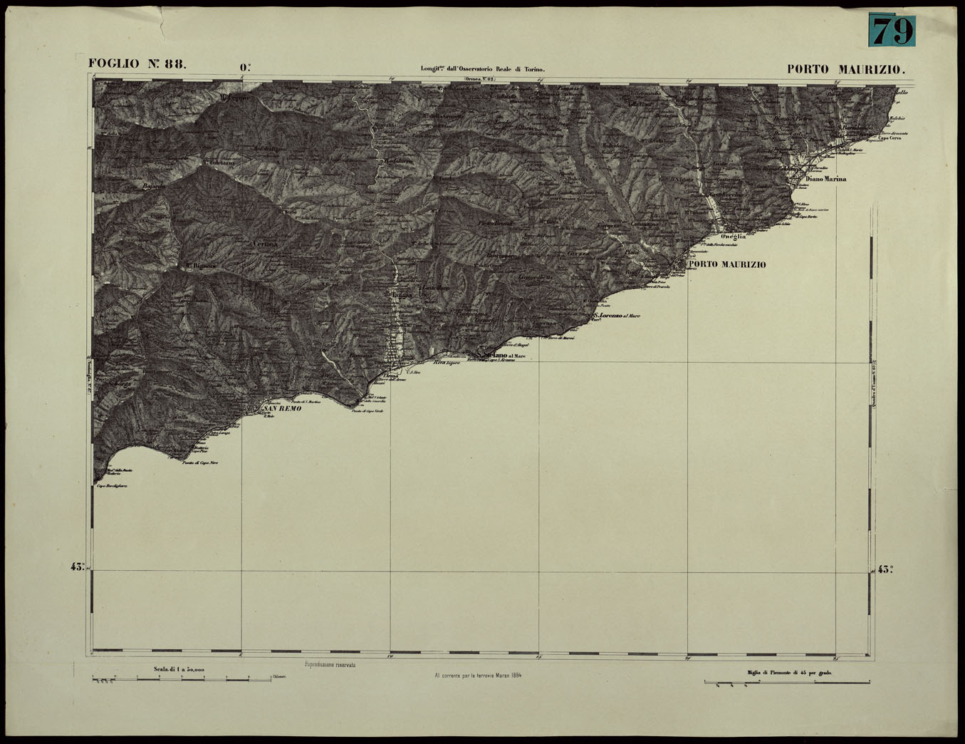 CARTA TOPOGRAFICA DEGLI STATI IN TERRAFERMA DI S.M. IL RE DI SARDEGNA ALLA SCALA DI 1.A 50.000. OPERA DEL CORPO REALE DELLO STATO MAGGIORE - FOGLIO N.°88. PORTO MAURIZIO
