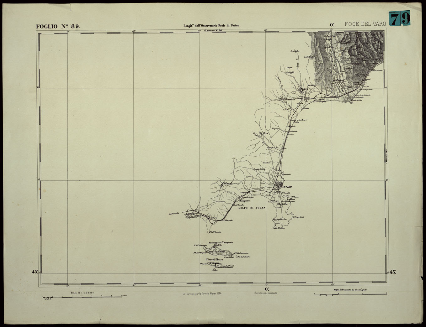CARTA TOPOGRAFICA DEGLI STATI IN TERRAFERMA DI S.M. IL RE DI SARDEGNA ALLA SCALA DI 1.A 50.000. OPERA DEL CORPO REALE DELLO STATO MAGGIORE - FOGLIO N.°89. FOCE DEL VARO