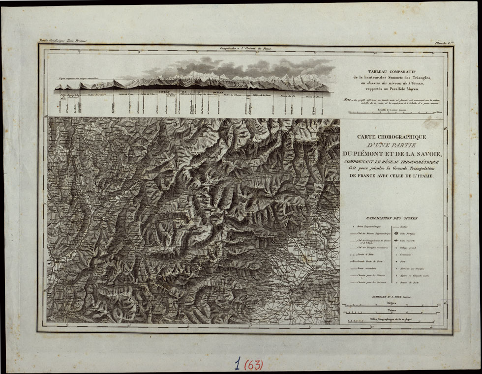 CARTE CHOROGRAPHIQUE D'UNE PARTIE DU PIEMONT ET DE LA SAVOIE COMPRENANT LA RESEAR TRIGONOMETRIQUE FAIT POUR JONDRE LA GRANDE TRINGULATION DE FRANCE AVEC CELLE DE L'ITALIE - FOGLIO 1 (63)