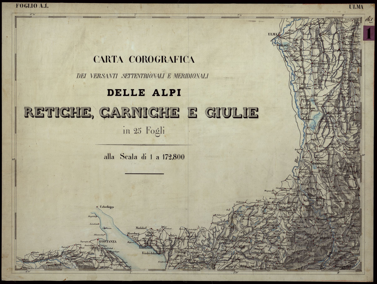 CARTA COROGRAFICA DEI VERSANTI SETTENTRIONALI E MERIDIONALI DELLE ALPI RETICHE CARNICHE E GIULIE IN 25 FOGLI - FOGLIO A1 ULMA