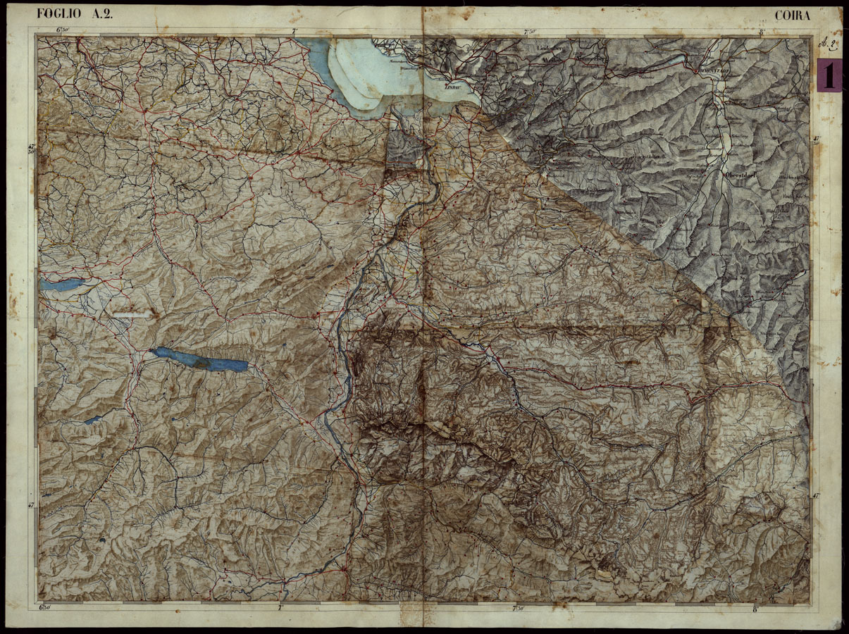 CARTA COROGRAFICA DEI VERSANTI SETTENTRIONALI E MERIDIONALI DELLE ALPI RETICHE CARNICHE E GIULIE IN 25 FOGLI - FOGLIO A.2 COIRA