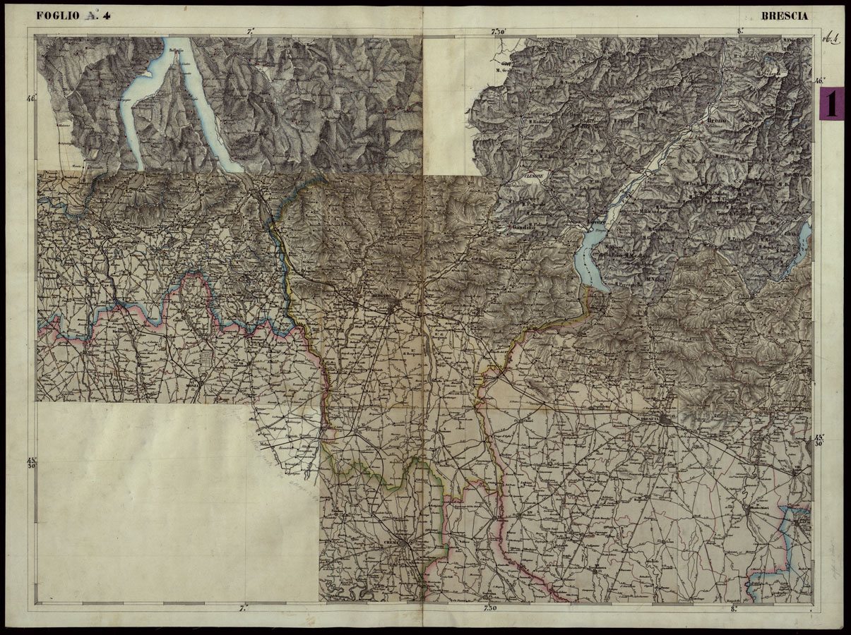 CARTA COROGRAFICA DEI VERSANTI SETTENTRIONALI E MERIDIONALI DELLE ALPI RETICHE CARNICHE E GIULIE IN 25 FOGLI - FOGLIO A.4 BRESCIA