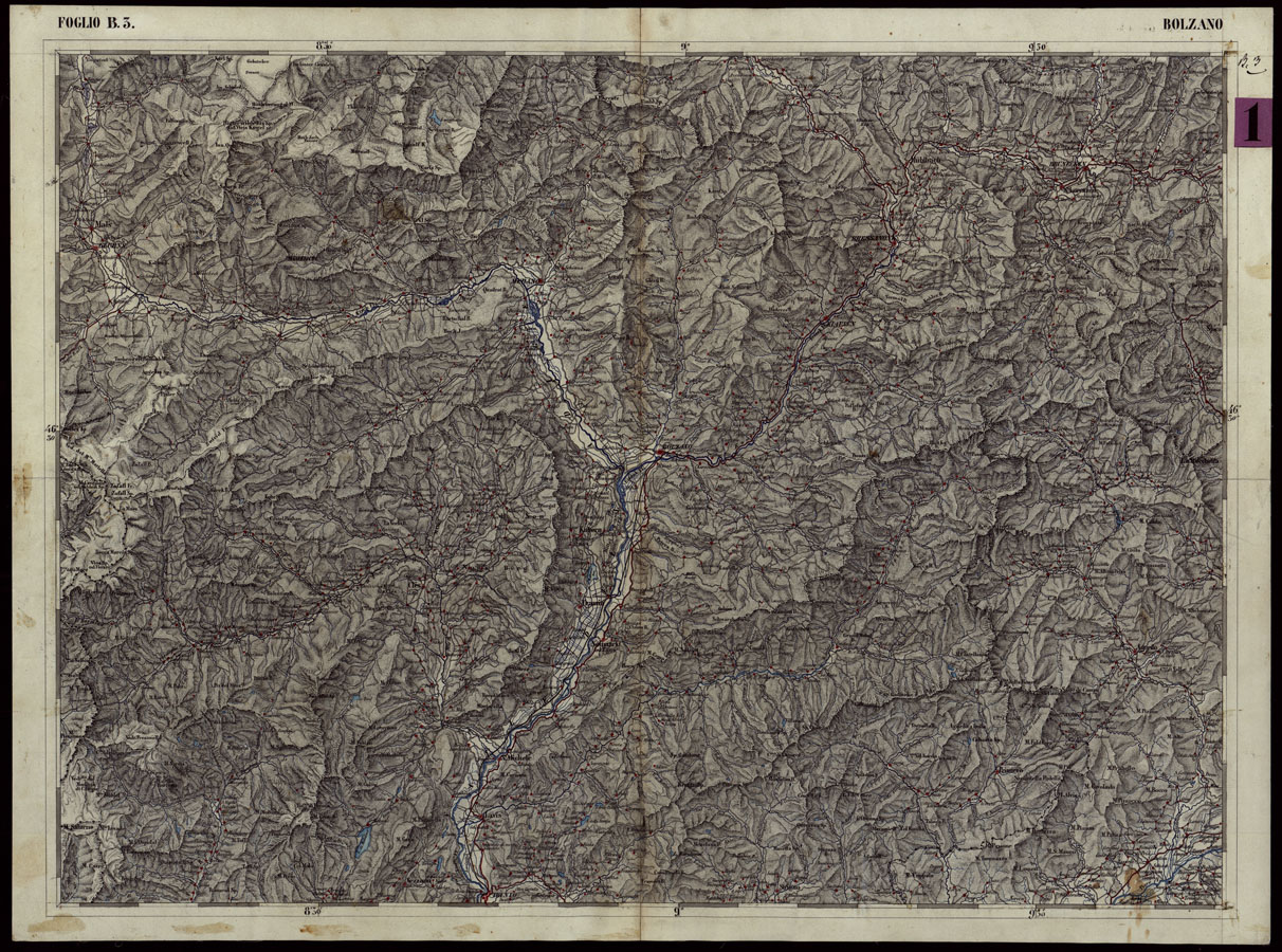 CARTA COROGRAFICA DEI VERSANTI SETTENTRIONALI E MERIDIONALI DELLE ALPI RETICHE CARNICHE E GIULIE IN 25 FOGLI - FOGLIO B.3 BOLZANO