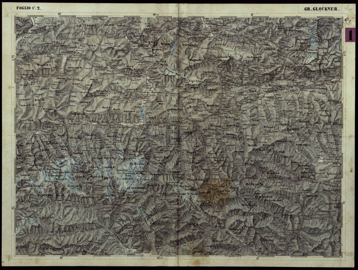 CARTA COROGRAFICA DEI VERSANTI SETTENTRIONALI E MERIDIONALI DELLE ALPI RETICHE CARNICHE E GIULIE IN 25 FOGLI - FOGLIO C.2 GR. GLOCKNER