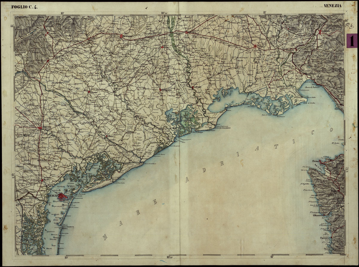 CARTA COROGRAFICA DEI VERSANTI SETTENTRIONALI E MERIDIONALI DELLE ALPI RETICHE CARNICHE E GIULIE IN 25 FOGLI - FOGLIO C.4 VENEZIA