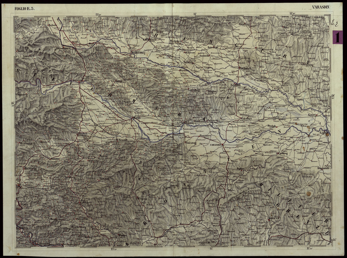 CARTA COROGRAFICA DEI VERSANTI SETTENTRIONALI E MERIDIONALI DELLE ALPI RETICHE CARNICHE E GIULIE IN 25 FOGLI - FOGLIO E.3 VARASDIN