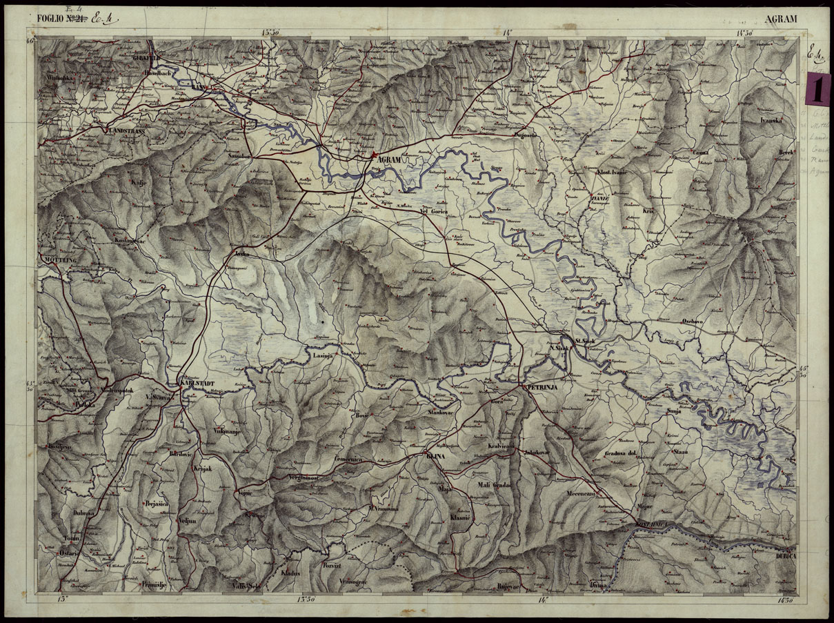 CARTA COROGRAFICA DEI VERSANTI SETTENTRIONALI E MERIDIONALI DELLE ALPI RETICHE CARNICHE E GIULIE IN 25 FOGLI - FOGLIO E.4 AGRAM