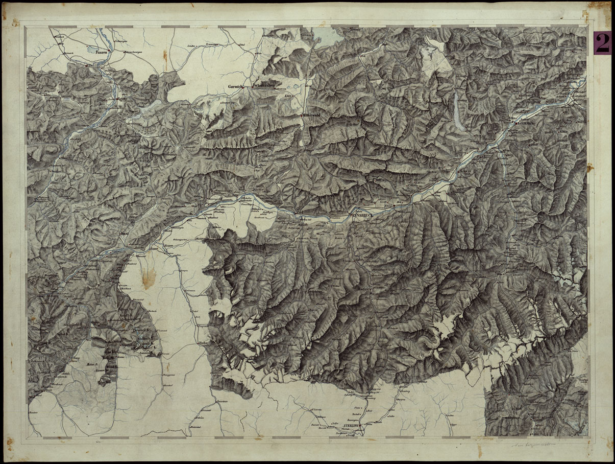 CARTA COROGRAFICA DEI VERSANTI SETTENTRIONALI E MERIDIONALI DELLE ALPI RETICHE, CARNICHE E GIULIE