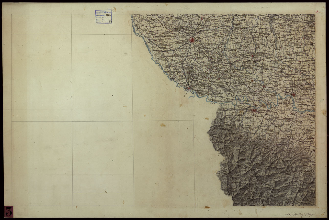 "Sette fogli modello che dovevano servire ad estendere la carta degli Stati Sardi in Terraferma. Lavoro iniziato nel 1857 e interrotto nel 1872."