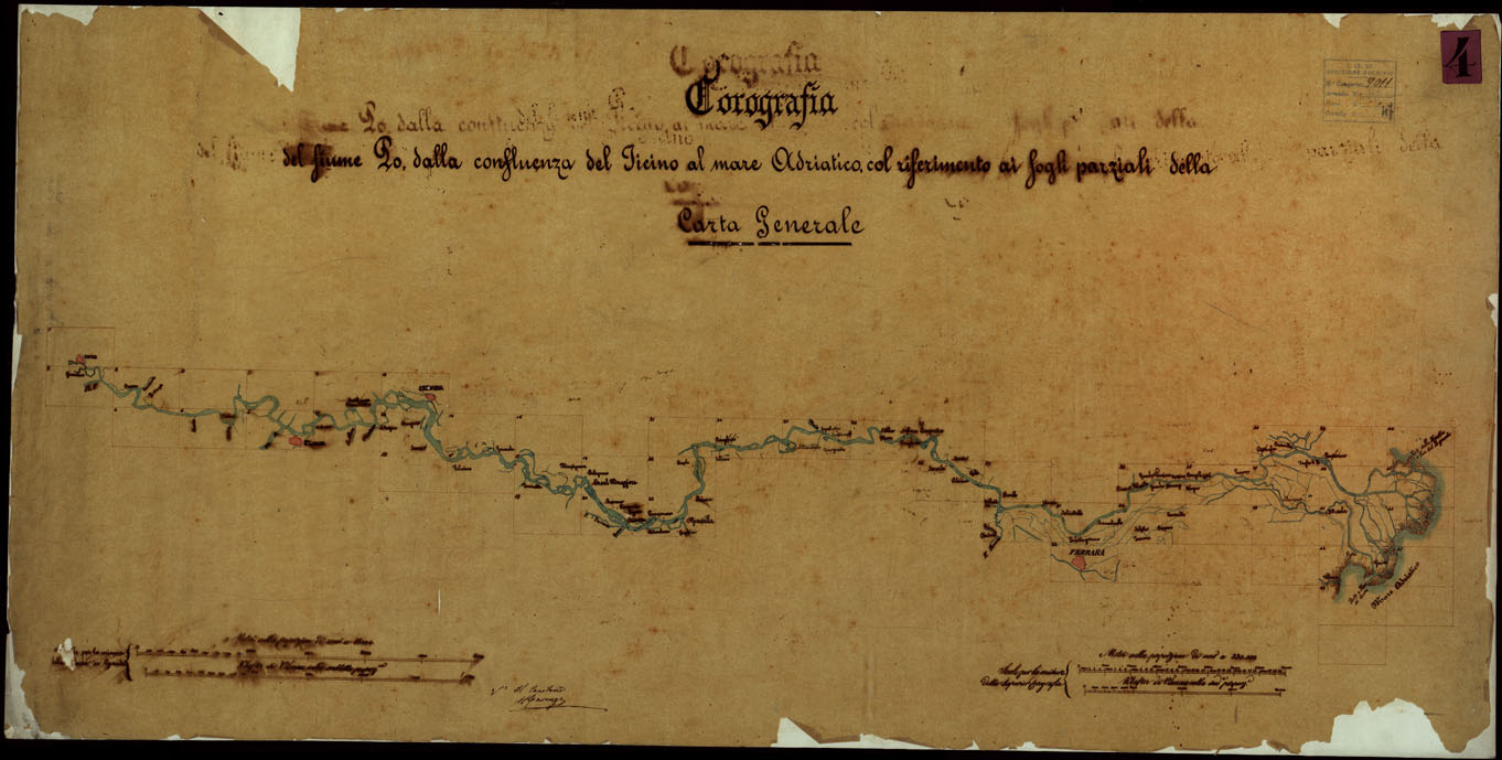 Corografia del fiume Po dalla confluenza del Ticino al Mare Adriatico, col riferimento ai fogli parziali della Carta Generale - Quadro d'unione