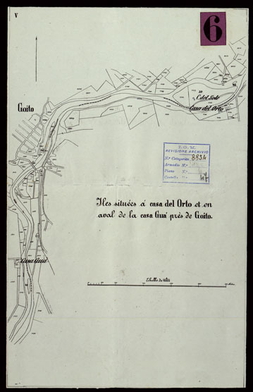"Disegno su tela lucida. Due copie a colori e una terza in nero in sei piccoli fogli. Un secondo lucido su tela,pure a colori, si riferisce al tratto del Mincio tra Rivalta e C. Pardinali(Mantova). E' alla stessa scala e misura cm. 62x63."