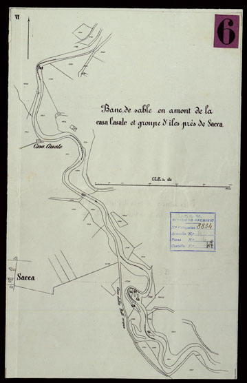 "Disegno su tela lucida. Due copie a colori e una terza in nero in sei piccoli fogli. Un secondo lucido su tela, pure a colori, si riferisce al tratto del Mincio tra Rivalta e C. Pardinali (Mantova). E' alla stessa scala e misura cm. 62x63."