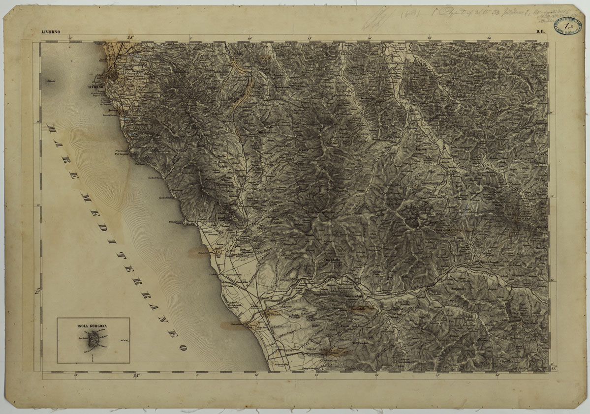CARTA TOPOGRAFICA DELLA LOMBARDIA, DEL VENETO E DELL'ITALIA CENTRALE - CARTA DEGLI EX DUCATI DI PARMA, PIACENZA E MODENA - D.11 LIVORNO