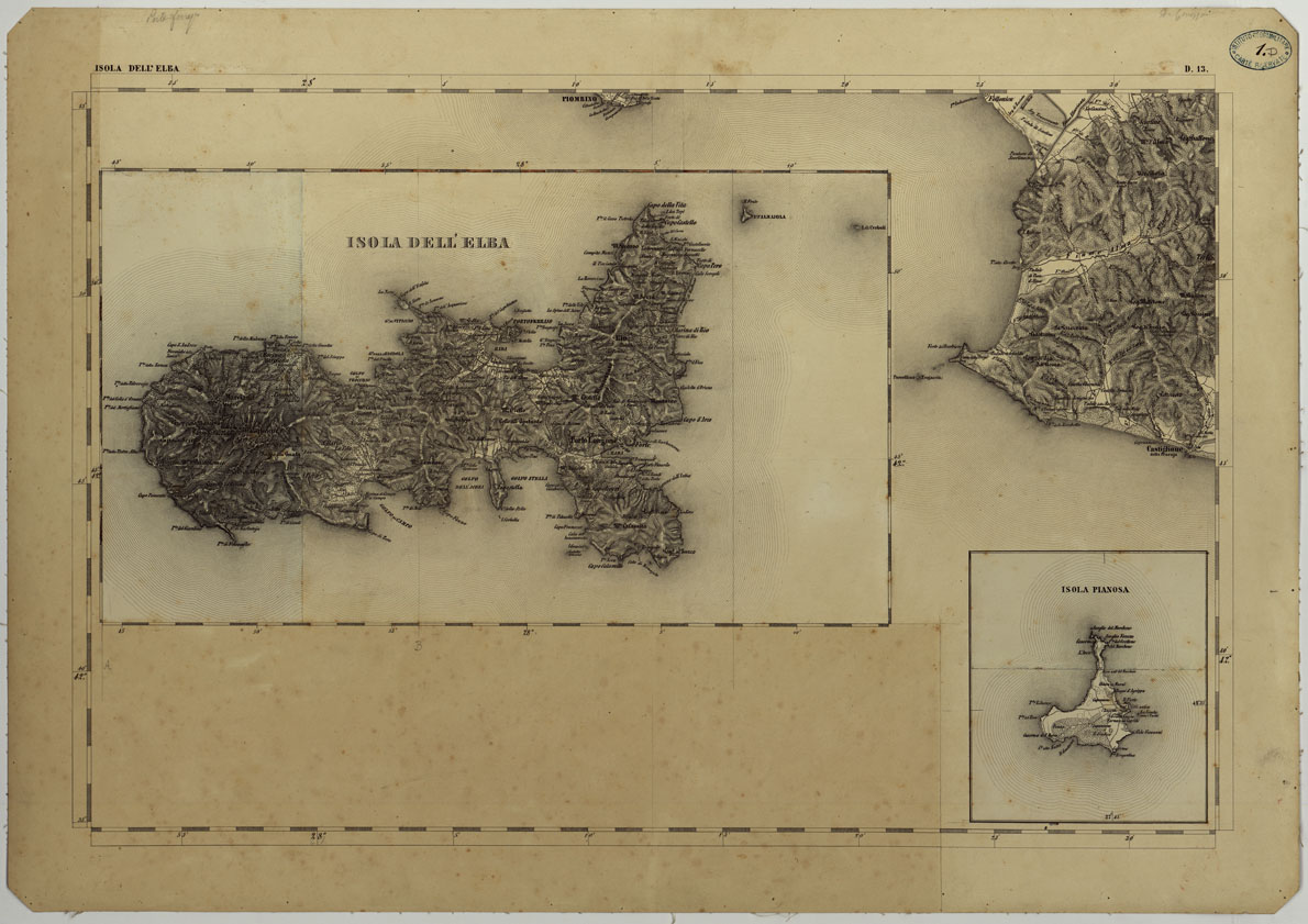 CARTA TOPOGRAFICA DELLA LOMBARDIA, DEL VENETO E DELL'ITALIA CENTRALE - CARTA DEGLI EX DUCATI DI PARMA, PIACENZA E MODENA - D.13 ISOLA D'ELBA ISOLA PIANOSA