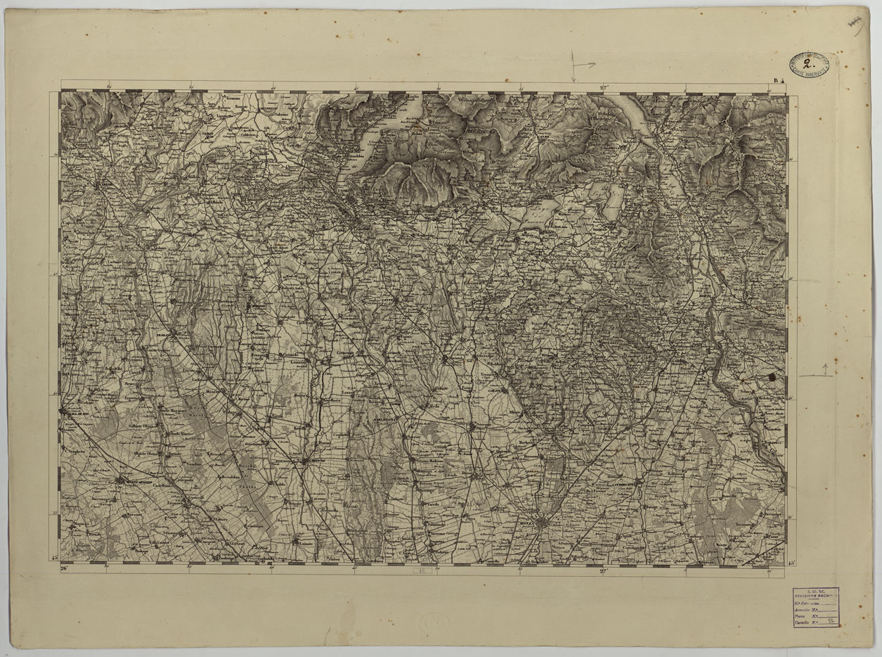 CARTA TOPOGRAFICA DEL REGNO LOMBARDO-VENETO COSTRUTTA SOPRA MISURE ASTRONOMICO-TRIGONOMETRICHE ED INCISA A MILANO NELL'ISTITUTO GEOGRAFICO MILITARE DELL'I.R. STATO MAGGIORE GENARALE AUSTRIACO PUBBLICATA NELL'ANNO - B.4