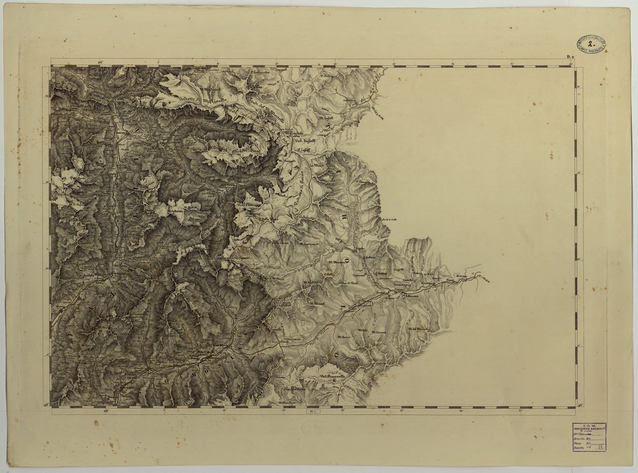 CARTA TOPOGRAFICA DEL REGNO LOMBARDO-VENETO COSTRUTTA SOPRA MISURE ASTRONOMICO-TRIGONOMETRICHE ED INCISA A MILANO NELL'ISTITUTO GEOGRAFICO MILITARE DELL'I.R. STATO MAGGIORE GENARALE AUSTRIACO PUBBLICATA NELL'ANNO - D.2