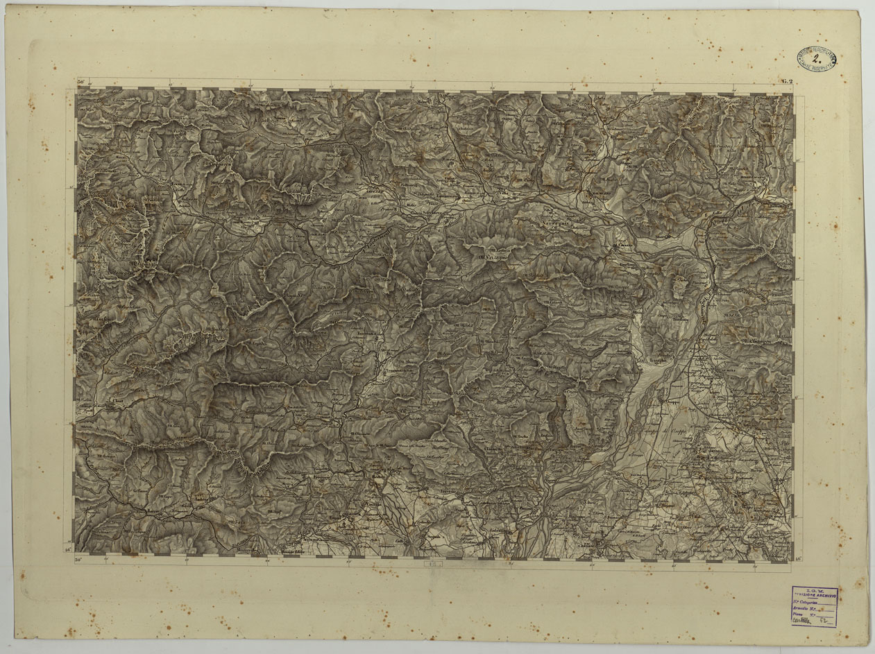 CARTA TOPOGRAFICA DEL REGNO LOMBARDO-VENETO COSTRUTTA SOPRA MISURE ASTRONOMICO-TRIGONOMETRICHE ED INCISA A MILANO NELL'ISTITUTO GEOGRAFICO MILITARE DELL'I.R. STATO MAGGIORE GENARALE AUSTRIACO PUBBLICATA NELL'ANNO - G.2