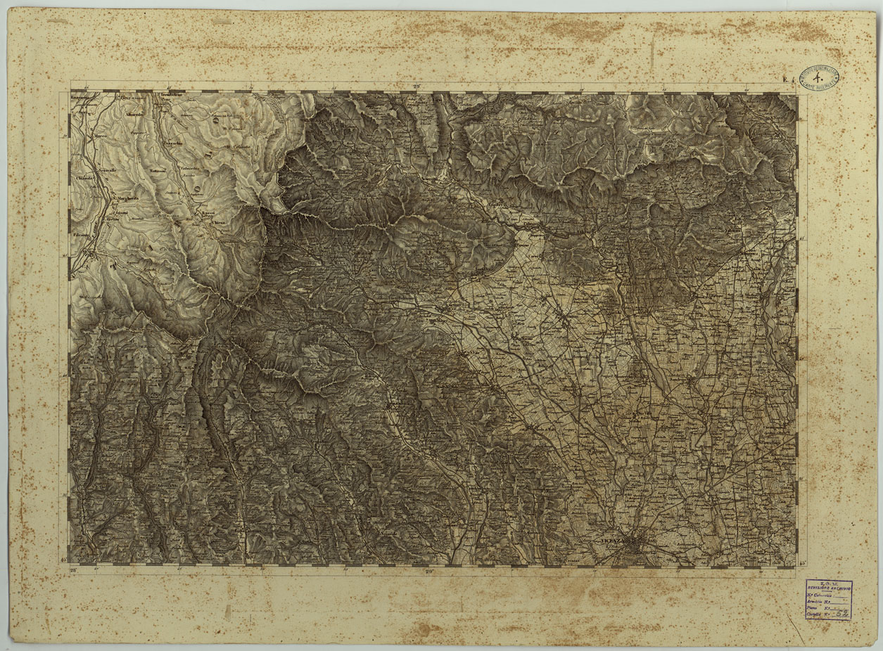 CARTA TOPOGRAFICA DEL REGNO LOMBARDO-VENETO COSTRUTTA SOPRA MISURE ASTRONOMICO-TRIGONOMETRICHE ED INCISA A MILANO NELL'ISTITUTO GEOGRAFICO MILITARE DELL'I.R. STATOMAGGIORE GENERALE AUSTRIACO - E.4