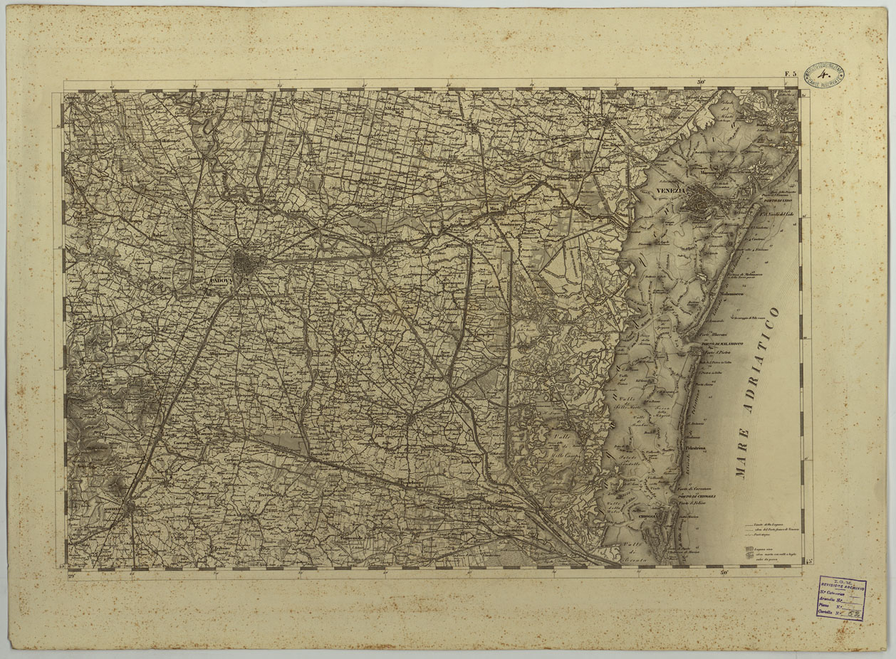 CARTA TOPOGRAFICA DEL REGNO LOMBARDO-VENETO COSTRUTTA SOPRA MISURE ASTRONOMICO-TRIGONOMETRICHE ED INCISA A MILANO NELL'ISTITUTO GEOGRAFICO MILITARE DELL'I.R. STATO MAGGIORE GENERALE AUSTRIACO - F.5