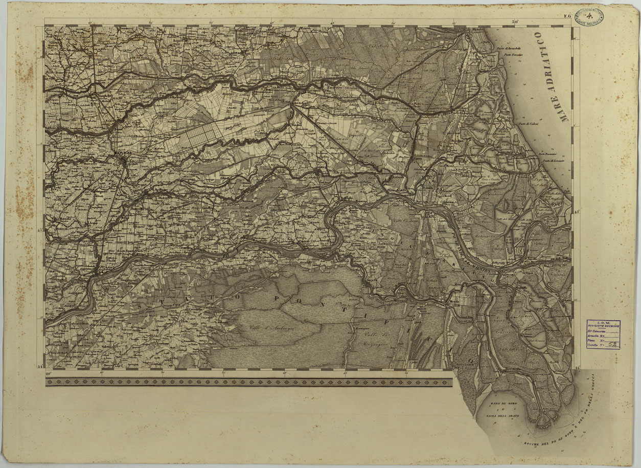 CARTA TOPOGRAFICA DEL REGNO LOMBARDO-VENETO COSTRUTTA SOPRA MISURE ASTRONOMICO-TRIGONOMETRICHE ED INCISA A MILANO NELL'ISTITUTO GEOGRAFICO MILITARE DELL'I.R. STATO MAGGIORE GENERALE AUSTRIACO - F.6