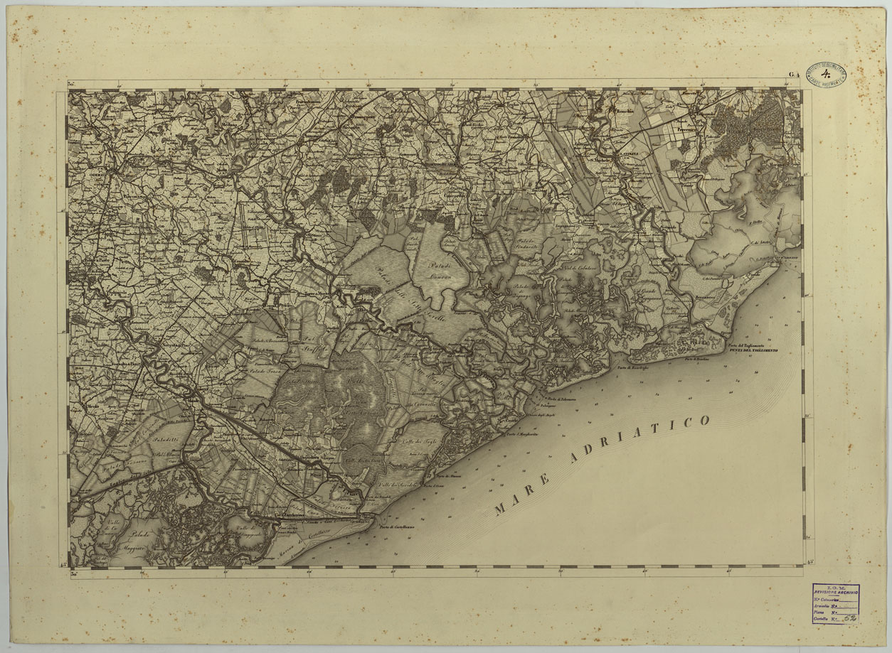CARTA TOPOGRAFICA DEL REGNO LOMBARDO-VENETO COSTRUTTA SOPRA MISURE ASTRONOMICO-TRIGONOMETRICHE ED INCISA A MILANO NELL'ISTITUTO GEOGRAFICO MILITARE DELL'I.R. STATO MAGGIORE GENERALE AUSTRIACO - G.4
