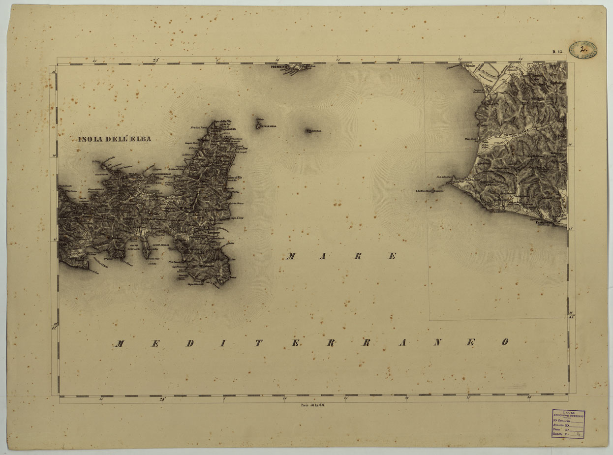 CARTA TOPOGRAFICA DELLO STATO PONTIFICIO E DEL GRAN-DUCATO DI TOSCANA COSTRUTTA SOPRA MISURE ASTRONOMICO TRIGONOMETRICHE ED INCISA SOPRA PIETRA A VIENNA NELL'I.R. ISTITUTO GEOGRAFICO MILITARE - FOGLIO D.13