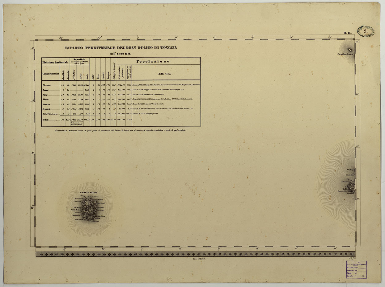CARTA TOPOGRAFICA DELLO STATO PONTIFICIO E DEL GRAN-DUCATO DI TOSCANA COSTRUTTA SOPRA MISURE ASTRONOMICO TRIGONOMETRICHE ED INCISA SOPRA PIETRA A VIENNA NELL'I.R. ISTITUTO GEOGRAFICO MILITARE - FOGLIO D.14