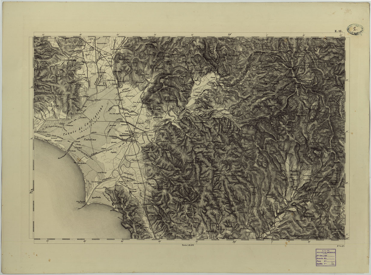 CARTA TOPOGRAFICA DELLO STATO PONTIFICIO E DEL GRAN-DUCATO DI TOSCANA COSTRUTTA SOPRA MISURE ASTRONOMICO TRIGONOMETRICHE ED INCISA SOPRA PIETRA A VIENNA NELL'I.R. ISTITUTO GEOGRAFICO MILITARE - FOGLIO E.13