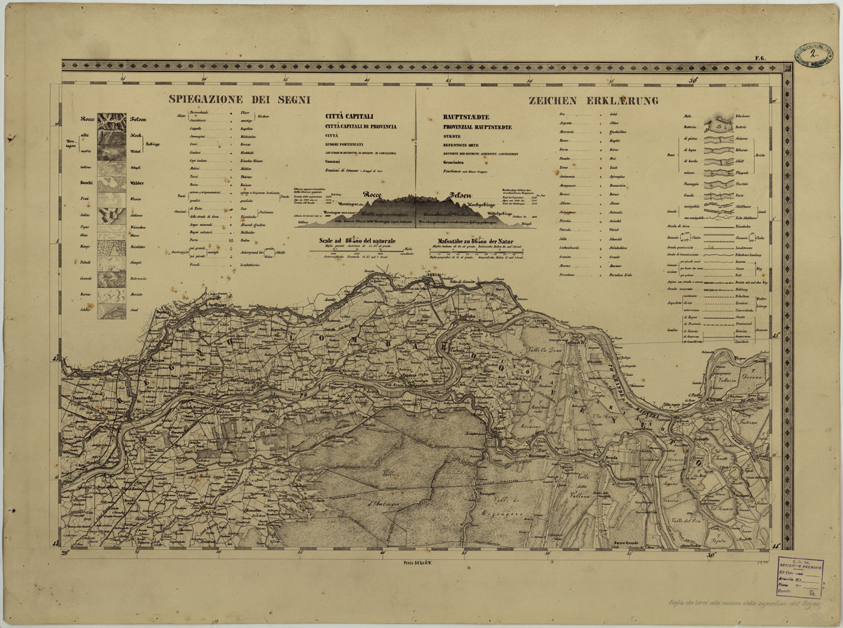 CARTA TOPOGRAFICA DELLO STATO PONTIFICIO E DEL GRAN-DUCATO DI TOSCANA COSTRUTTA SOPRA MISURE ASTRONOMICO TRIGONOMETRICHE ED INCISA SOPRA PIETRA A VIENNA NELL'I.R. ISTITUTO GEOGRAFICO MILITARE - FOGLIO F.6 SEGNI CONVENZIONALI