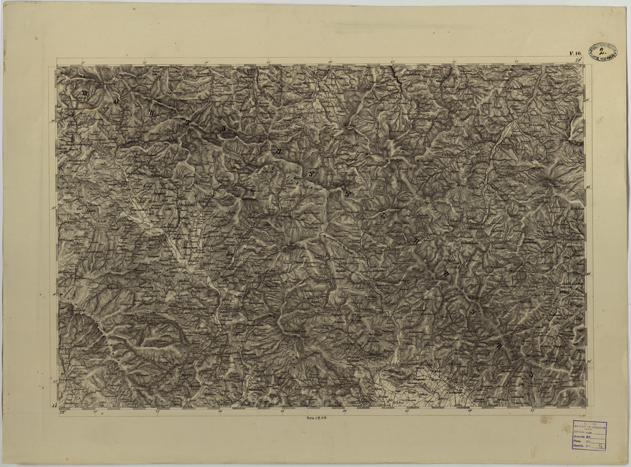 CARTA TOPOGRAFICA DELLO STATO PONTIFICIO E DEL GRAN-DUCATO DI TOSCANA COSTRUTTA SOPRA MISURE ASTRONOMICO TRIGONOMETRICHE ED INCISA SOPRA PIETRA A VIENNA NELL'I.R. ISTITUTO GEOGRAFICO MILITARE - FOGLIO F.10
