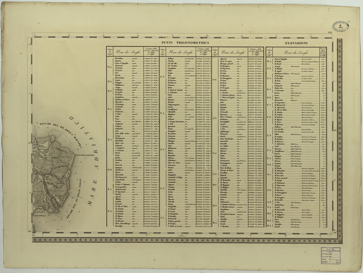CARTA TOPOGRAFICA DELLO STATO PONTIFICIO E DEL GRAN-DUCATO DI TOSCANA COSTRUTTA SOPRA MISURE ASTRONOMICO TRIGONOMETRICHE ED INCISA SOPRA PIETRA A VIENNA NELL'I.R. ISTITUTO GEOGRAFICO MILITARE - FOGLIO G.6 PUNTI TRIGONOMICI - ELEVAZIONI