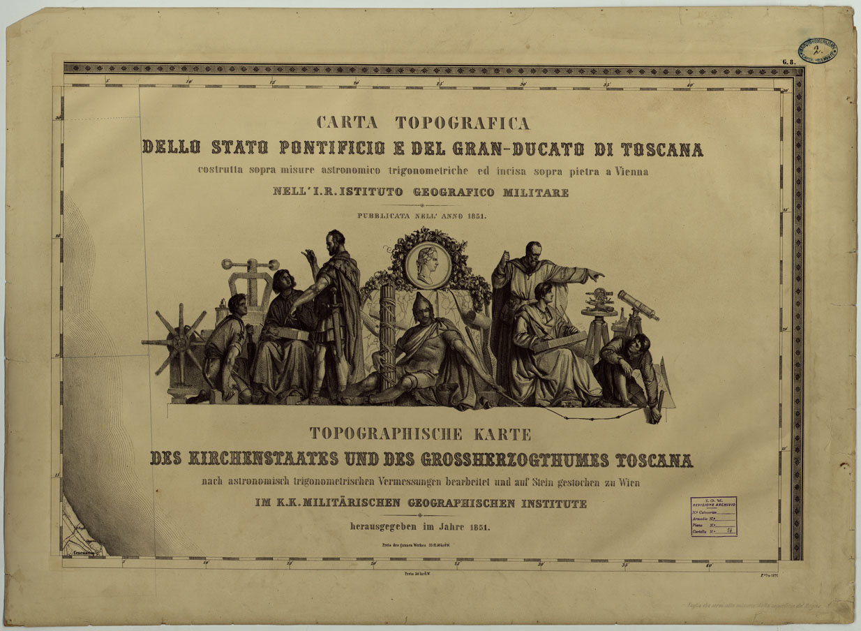 CARTA TOPOGRAFICA DELLO STATO PONTIFICIO E DEL GRAN-DUCATO DI TOSCANA COSTRUTTA SOPRA MISURE ASTRONOMICO TRIGONOMETRICHE ED INCISA SOPRA PIETRA A VIENNA NELL'I.R. ISTITUTO GEOGRAFICO MILITARE - FOGLIO G.8 TITOLO