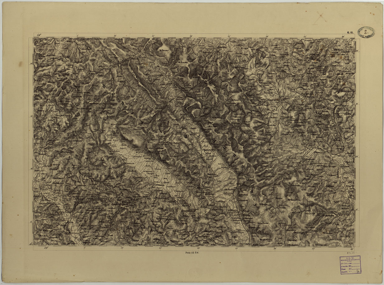 CARTA TOPOGRAFICA DELLO STATO PONTIFICIO E DEL GRAN-DUCATO DI TOSCANA COSTRUTTA SOPRA MISURE ASTRONOMICO TRIGONOMETRICHE ED INCISA SOPRA PIETRA A VIENNA NELL'I.R. ISTITUTO GEOGRAFICO MILITARE - FOGLIO G.11