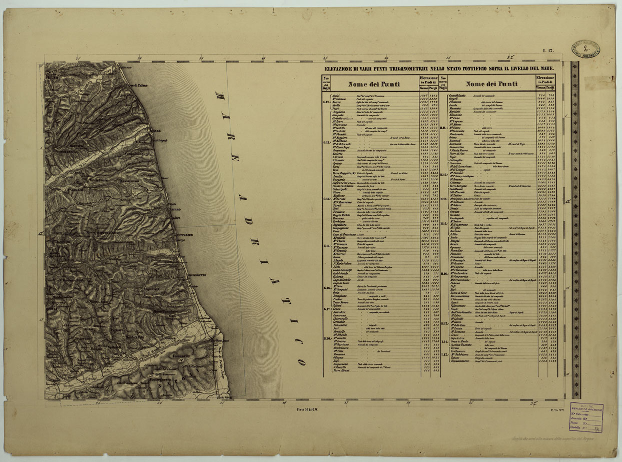 CARTA TOPOGRAFICA DELLO STATO PONTIFICIO E DEL GRAN-DUCATO DI TOSCANA COSTRUTTA SOPRA MISURE ASTRONOMICO TRIGONOMETRICHE ED INCISA SOPRA PIETRA A VIENNA NELL'I.R. ISTITUTO GEOGRAFICO MILITARE - FOGLIO I.12 - PUNTI TRIGONOMETRICI