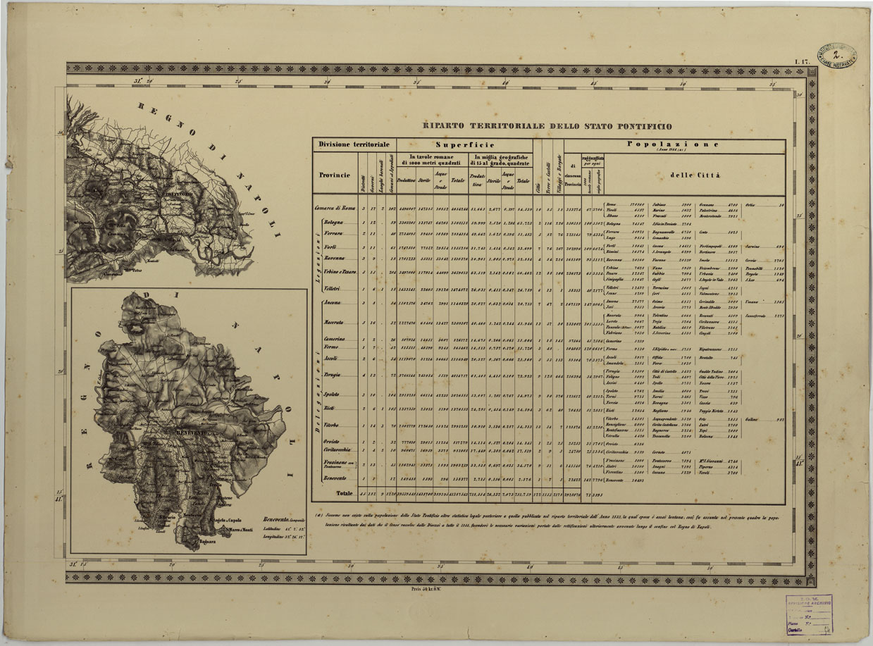 CARTA TOPOGRAFICA DELLO STATO PONTIFICIO E DEL GRAN-DUCATO DI TOSCANA COSTRUTTA SOPRA MISURE ASTRONOMICO TRIGONOMETRICHE ED INCISA SOPRA PIETRA A VIENNA NELL'I.R. ISTITUTO GEOGRAFICO MILITARE - FOGLIO I.13