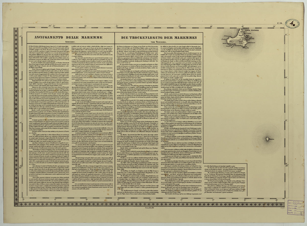 CARTA TOPOGRAFICA DELLO STATO PONTIFICIO E DAL GRAN-DUCATO DI TOSCANA COSTRUTTA SOPRA MISURE ASTRONOMICO TRIGONOMETRICHE CHE ED INCISA SOPRA PIETRA A VIENNA NELL'I.R. ISTITUTO GEOGRAFICO MILITARE PUBBLICATA NELL'ANNO 1851 - FOG. C.14