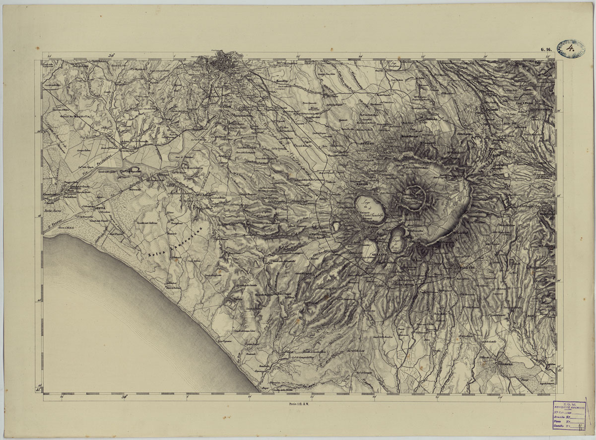 CARTA TOPOGRAFICA DELLO STATO PONTIFICIO E DAL GRAN-DUCATO DI TOSCANA COSTRUTTA SOPRA MISURE ASTRONOMICO TRIGONOMETRICHE CHE ED INCISA SOPRA PIETRA A VIENNA NELL'I.R. ISTITUTO GEOGRAFICO MILITARE PUBBLICATA NELL'ANNO 1851 - FOG. G.16