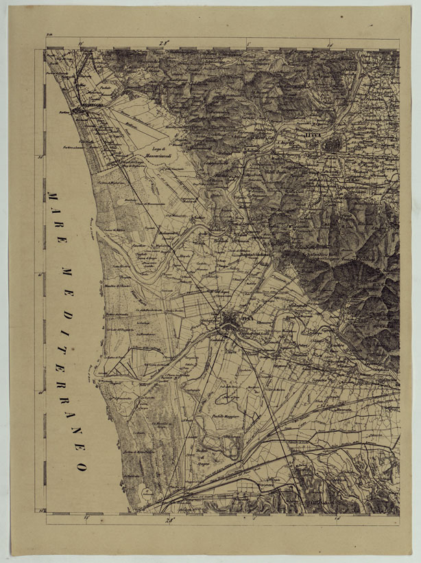 CARTA TOPOGRAFICA DELLE PROVINCIE LOMBARDO-VENETE E DEGLI EX DUCATI ALLA SCALA DI 1:86.400 1865 - FOG. D.10 PISA-LUCCA Parte 1