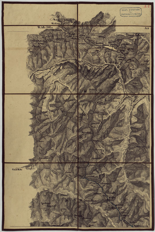 CARTA TOPOGRAFICA DELLA LOMBARDIAE DEI DUCATI DI PARMA, PIACENZA E MODENA ALLA SCALA DEL 1 86.400 DEL VERO DIVISA IN 32 FOGLI. LITOGRAFFIZZATA NELL'UFFICIO TOPOGRAFICO DEL REAL CORPO DI STATO MAGGIORE GENERALE - FOG. A.2