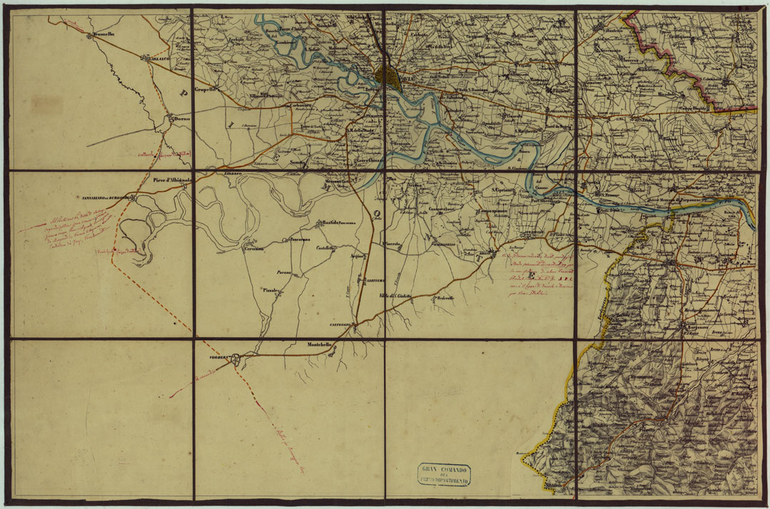 CARTA TOPOGRAFICA DELLA LOMBARDIAE DEI DUCATI DI PARMA, PIACENZA E MODENA ALLA SCALA DEL 1 86.400 DEL VERO DIVISA IN 32 FOGLI. LITOGRAFFIZZATA NELL'UFFICIO TOPOGRAFICO DEL REAL CORPO DI STATO MAGGIORE GENERALE - FOG. B.6