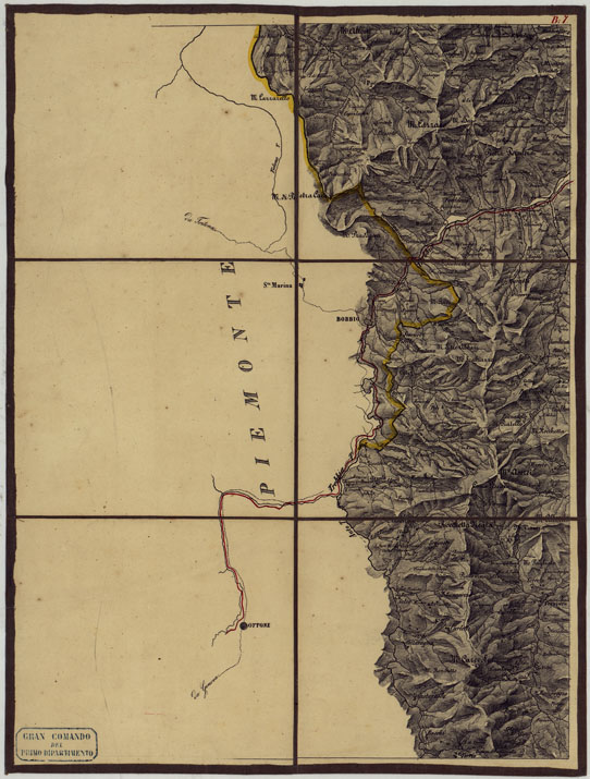 CARTA TOPOGRAFICA DELLA LOMBARDIAE DEI DUCATI DI PARMA, PIACENZA E MODENA ALLA SCALA DEL 1 86.400 DEL VERO DIVISA IN 32 FOGLI. LITOGRAFFIZZATA NELL'UFFICIO TOPOGRAFICO DEL REAL CORPO DI STATO MAGGIORE GENERALE - FOG. B.7