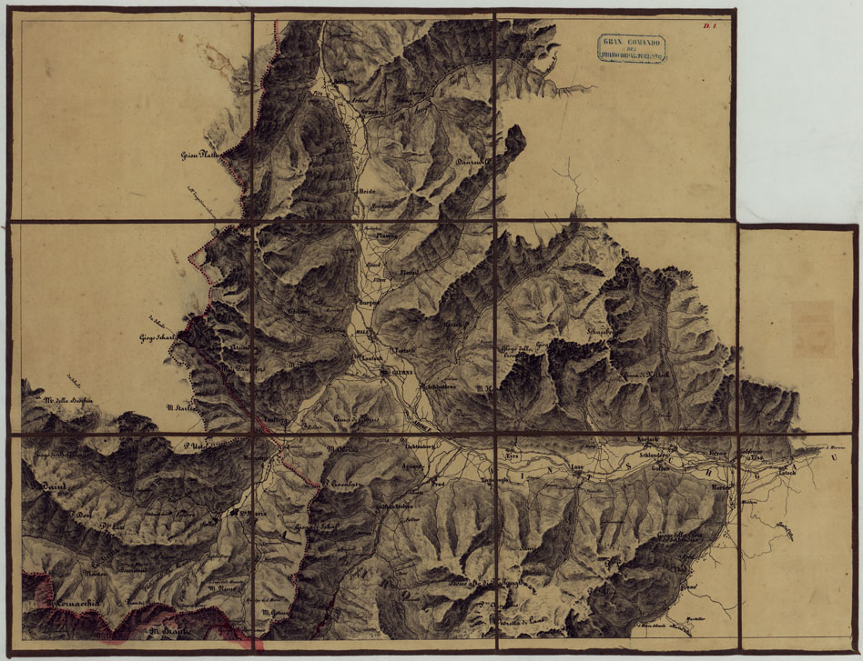 CARTA TOPOGRAFICA DELLA LOMBARDIAE DEI DUCATI DI PARMA, PIACENZA E MODENA ALLA SCALA DEL 1 86.400 DEL VERO DIVISA IN 32 FOGLI. LITOGRAFFIZZATA NELL'UFFICIO TOPOGRAFICO DEL REAL CORPO DI STATO MAGGIORE GENERALE - FOG. D.1
