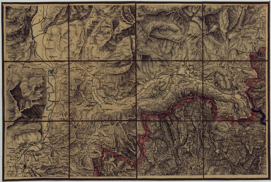 CARTA TOPOGRAFICA DELLA LOMBARDIAE DEI DUCATI DI PARMA, PIACENZA E MODENA ALLA SCALA DEL 1 86.400 DEL VERO DIVISA IN 32 FOGLI. LITOGRAFFIZZATA NELL'UFFICIO TOPOGRAFICO DEL REAL CORPO DI STATO MAGGIORE GENERALE - FOG. E.3