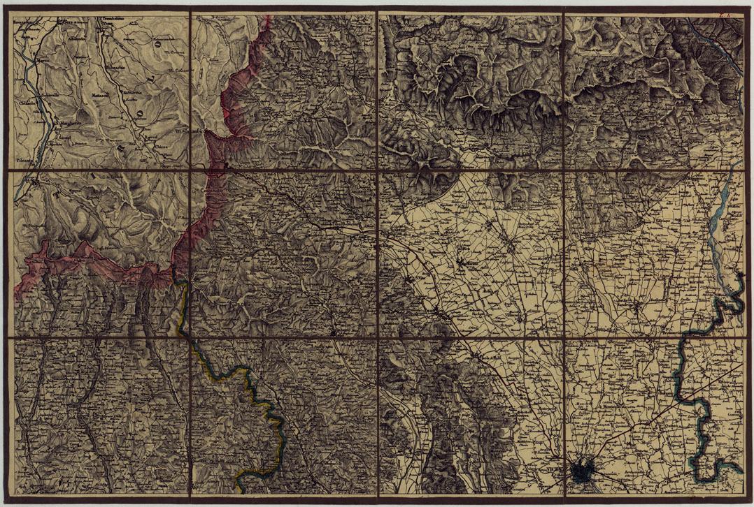 CARTA TOPOGRAFICA DELLA LOMBARDIAE DEI DUCATI DI PARMA, PIACENZA E MODENA ALLA SCALA DEL 1 86.400 DEL VERO DIVISA IN 32 FOGLI. LITOGRAFFIZZATA NELL'UFFICIO TOPOGRAFICO DEL REAL CORPO DI STATO MAGGIORE GENERALE - FOG. E.4