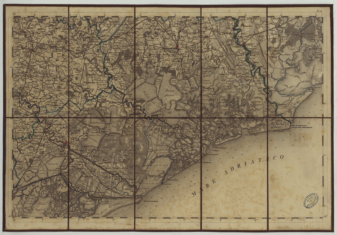 CARTA TOPOGRAFICA REGNO LOMBARDO-VENETO COSTRUTTA SOPRA MISURE ASTRONOMICO-TRIGONOMETRICHE ED INCISA A MILANO NELL'ISTITUO GEOGRAFICO MILTARE DELL'I.R. STATO MAGGIORE GENERALE AUSTRIACO. PUBBLICATA NELL'ANNO 1833 - FOGLIO G.4